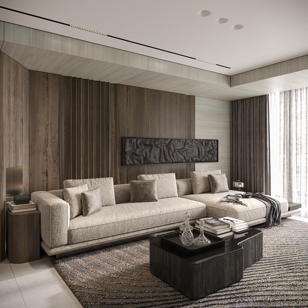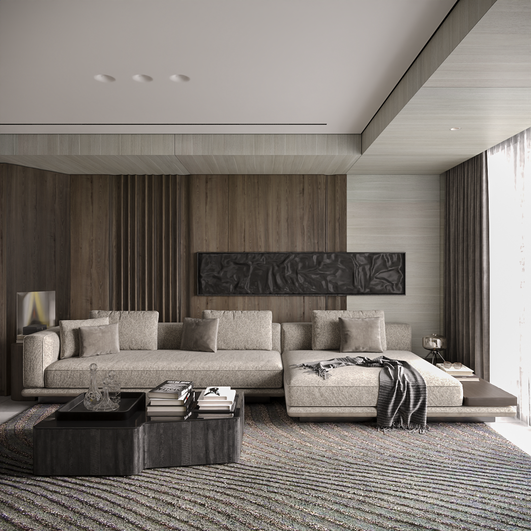 Không gian phòng khách là lời tuyên ngôn cho phong cách “Modern Luxury” (Sang trọng Hiện đại).